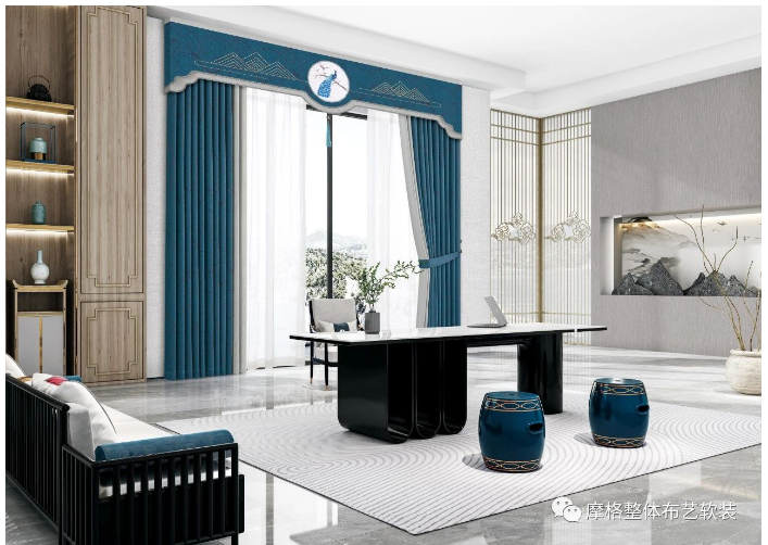 新中式风格在设计上延续了明清时期家居配饰理念,提炼了其中经典元素并加以简化和丰富。